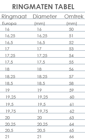 - Het aantal mm is de ringmaat.